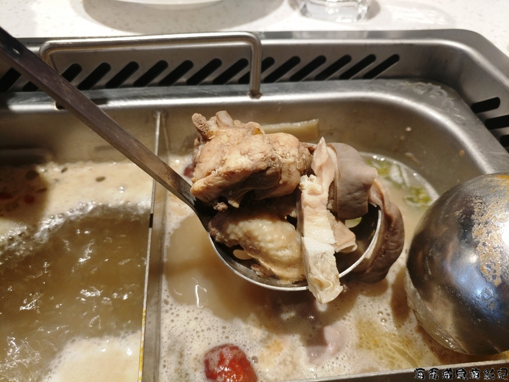 與現場服務人員再次確認自行攜帶的食材可以下鍋烹煮?服務員回答可以的,當下與我們對點食材後,隨即送入廚房,今天湯底選擇麻辣與胡椒豬肚另外2槽則為清湯