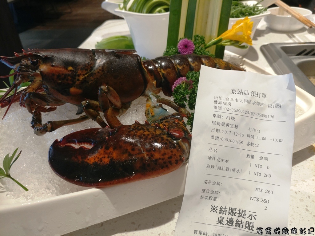 沒多久自帶的食材已經處理好,如同新聞上說的還有簡易擺盤,為了測試自帶海底撈在賣的食材是否能協助處理與擺盤,特地準備了活體波士頓龍蝦,看看店家會不會拒絕