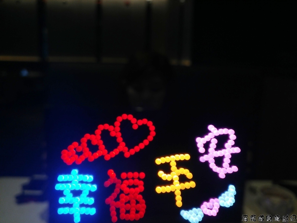 於用餐過程感覺冷氣有些冷,服務人員馬上貼心提供圍巾.讓人披上,真的是有服務到心坎上,眼尖的小威看見一旁的客人正在慶生,手上正拿著餐廳提供LED祝賀看板,於是提出需求,能否提供拍照使用,當LED板送上桌時,服務員告知:先生因為您是要拍照用的,另外幫您準備沒有生日字樣的看板,於是照片上就出現幸福平安,服務真的是沒話說
